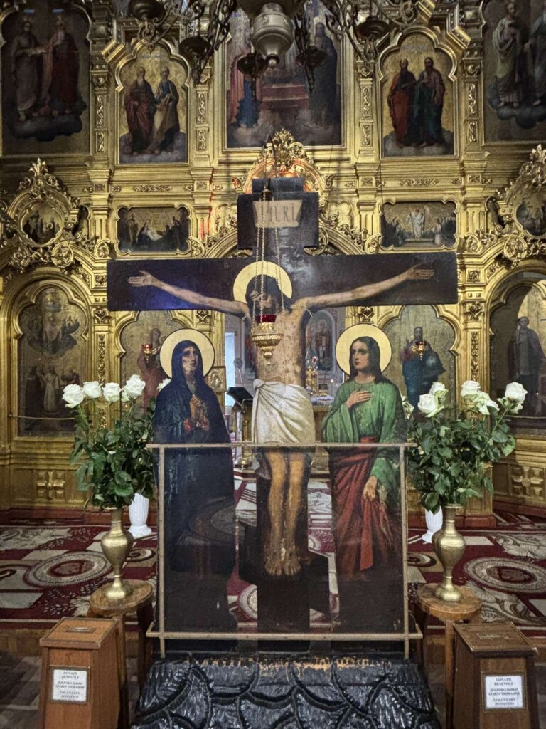 Apărătorul cel mare şi Domn al cerului şi al pământului, pe Tine, Împăratul cel nemuritor, văzându-Te răstignit pe Cruce, făptura toată s-a schimbat, Cerul s-a înspăimântat, temeliile pământului s-au clătinat. Iar noi, nevrednicii, închinăciune de mulţumire aducând Pătimirilor Tale pentru noi, cu tâlharul strigăm Ţie: Iisuse, Fiul lui Dumnezeu, pomeneşte-ne întru Împărăţia Ta! Iisuse, Cel ce Te-ai răstignit pentru noi, mântuieşte-ne! (Condacul 1)