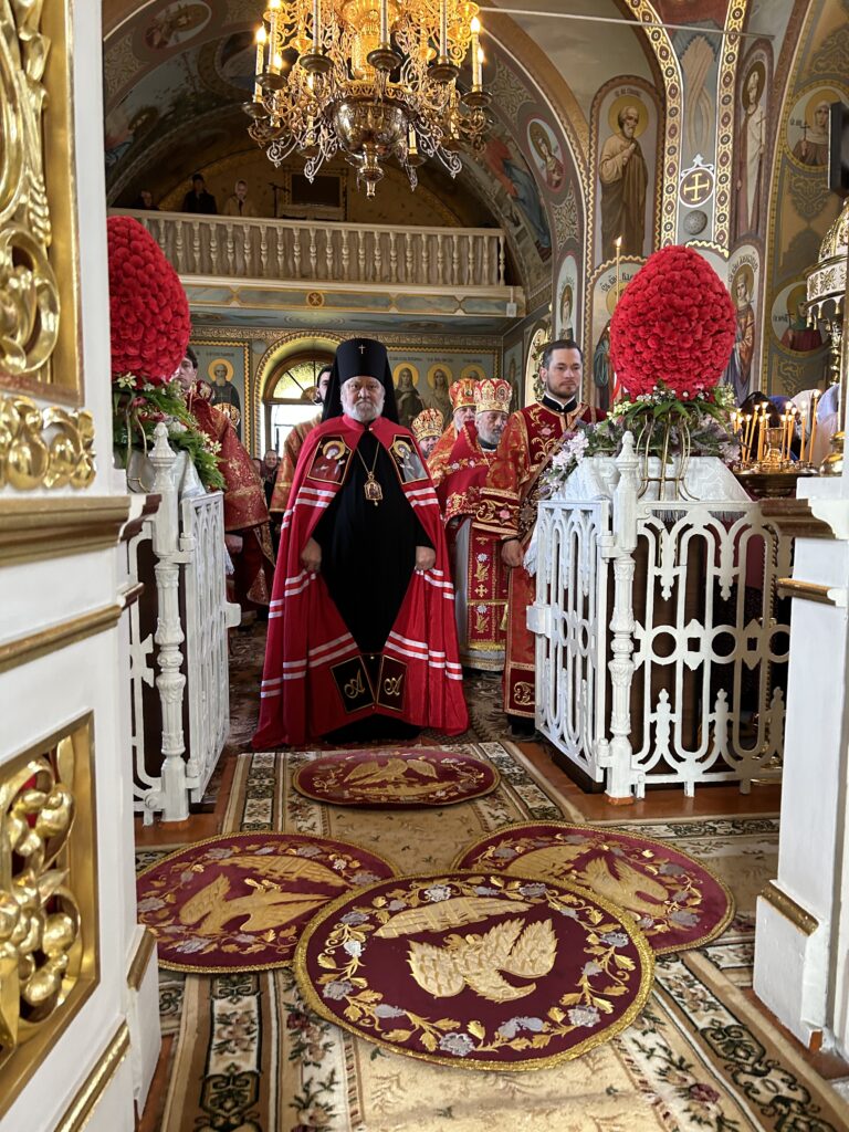 Chiriarhului i-au coliturghisit vicarul eparhial, Preasfințitul Nicolae, Episcop de Ceadîr-Lunga, prot. Gheorghe Topal, parohul bisericii gazdă împreună cu sobor de preoți și diaconi slujitori.