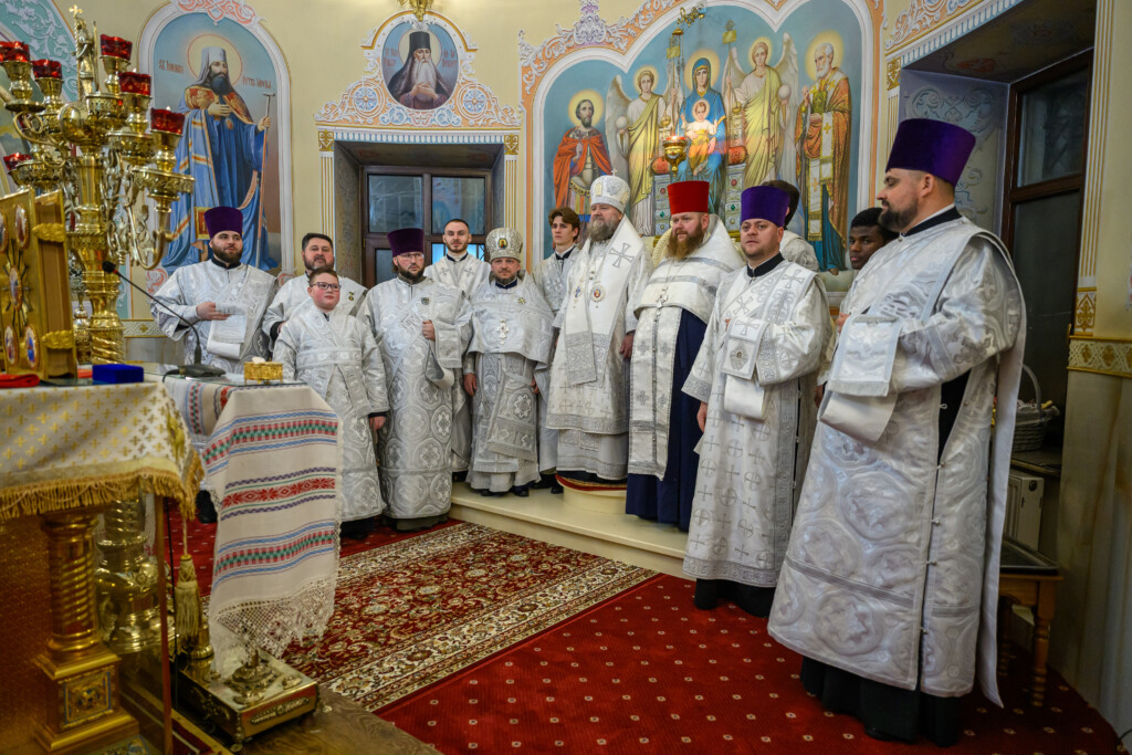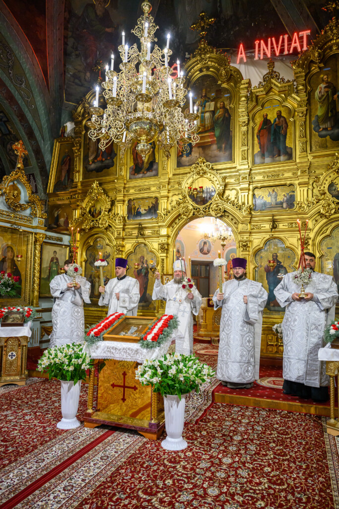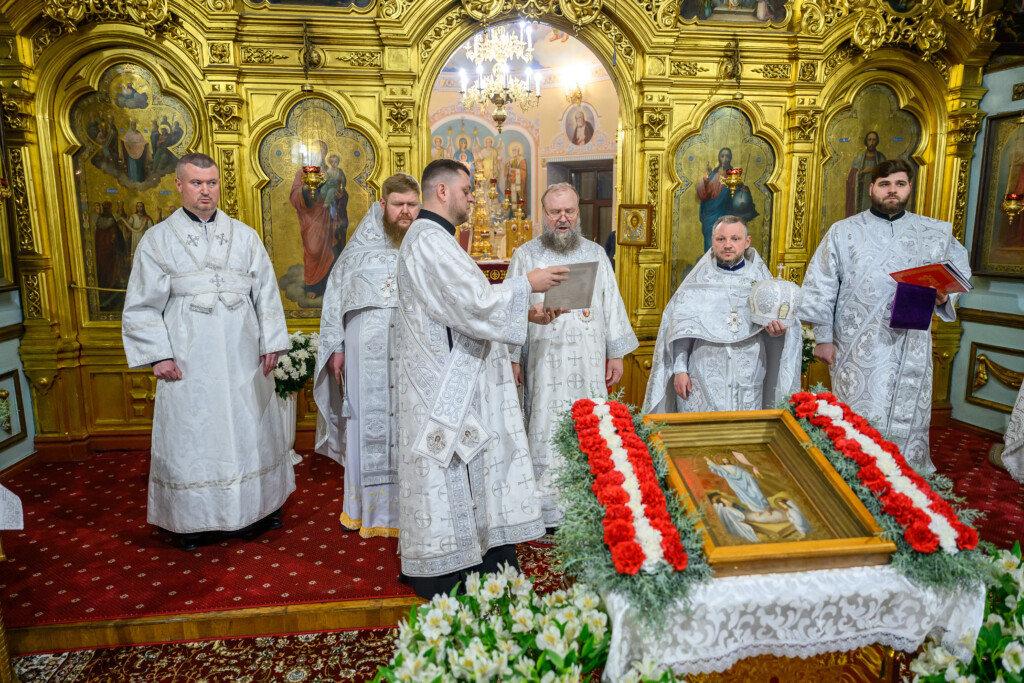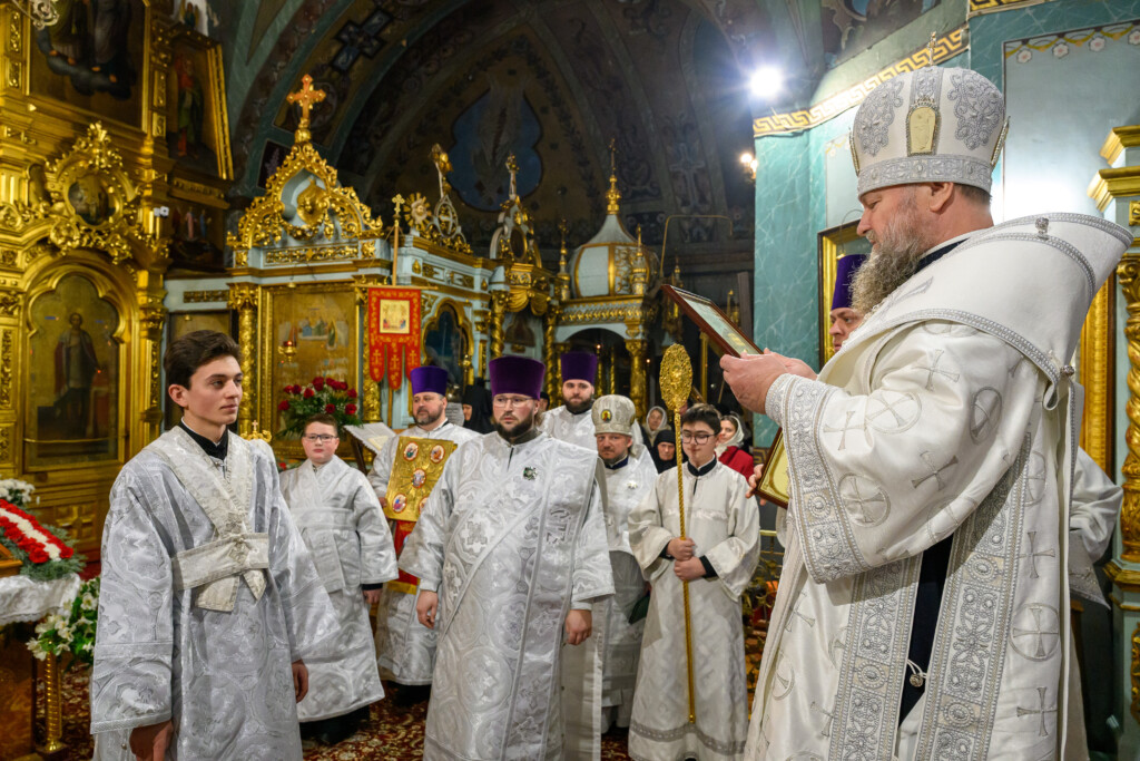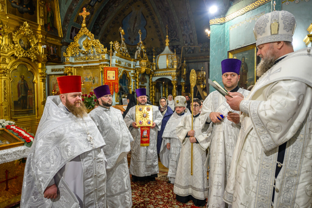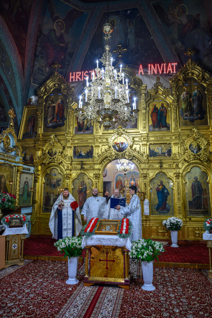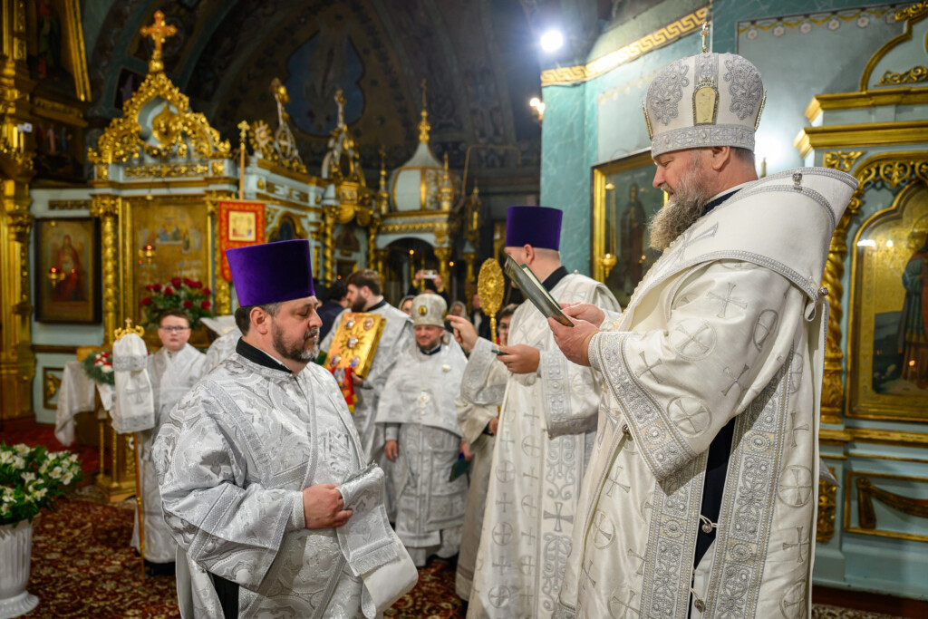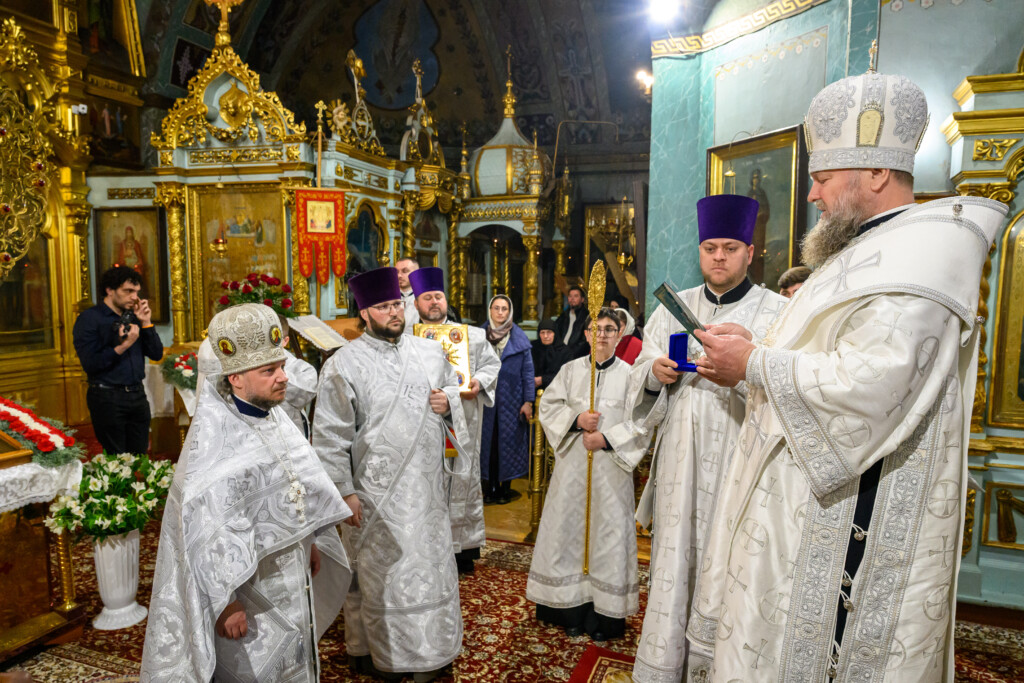La vohodul mic, Ierarhul a transmis distincții mitropolitane clericilor mănăstirii pe care Înaltpreasfințitul Mitropolit Vladimir le-a conferit pentru munca pe care o depun pentru binele credincioșilor și a Sfintei Mănăstiri.