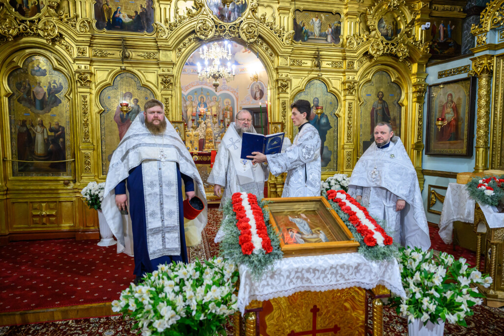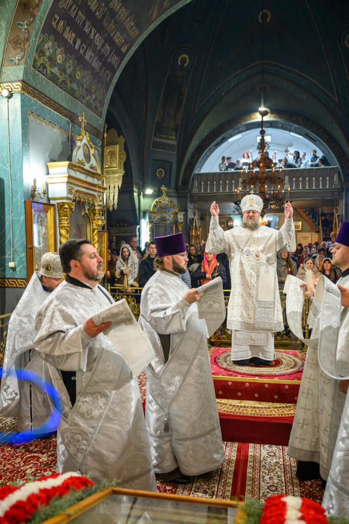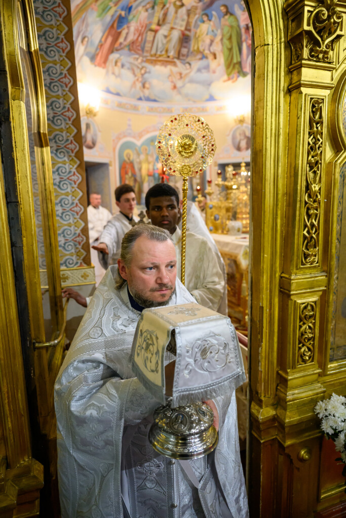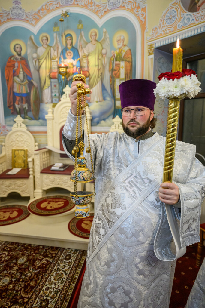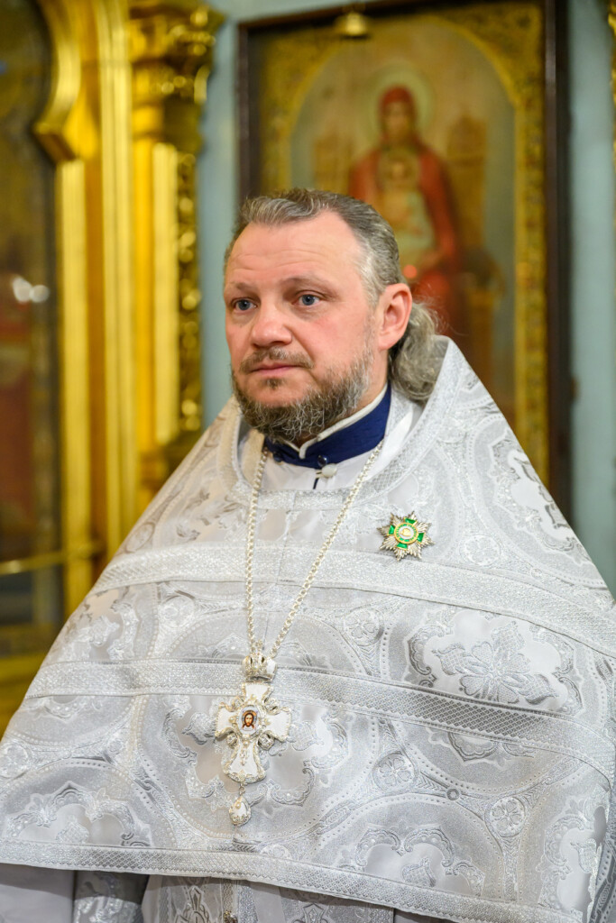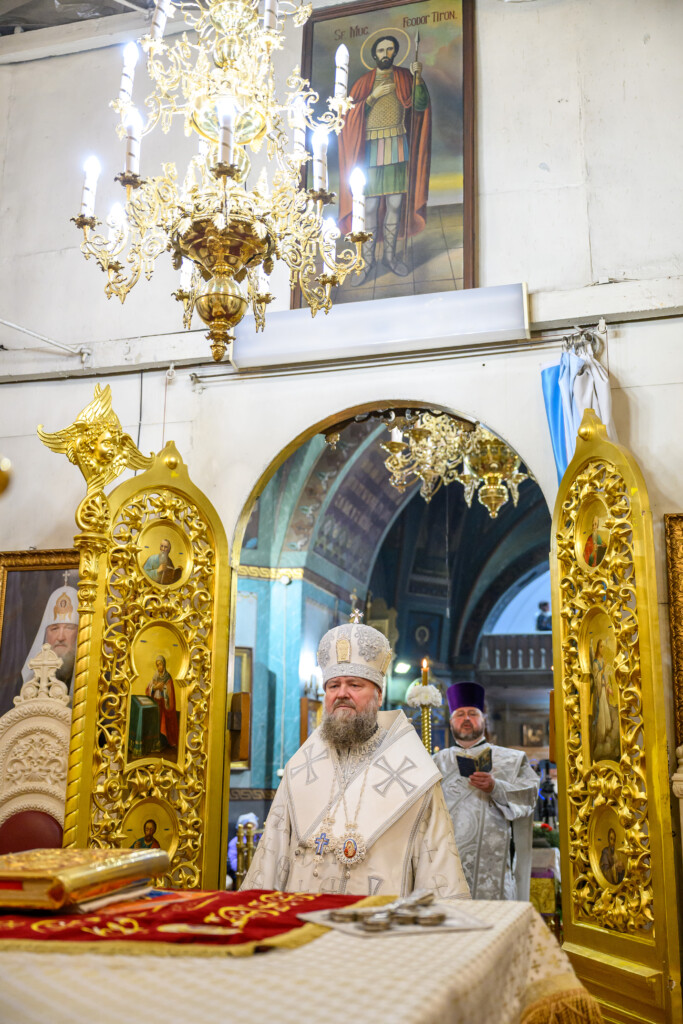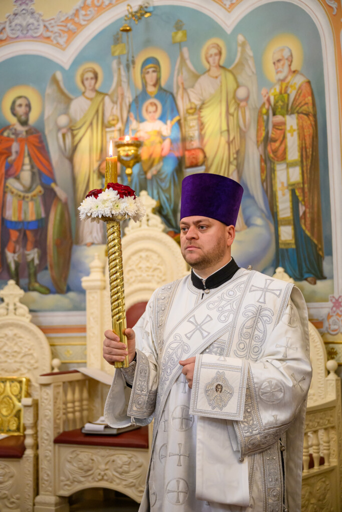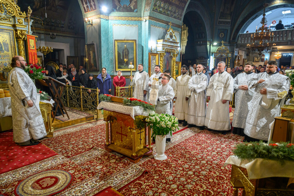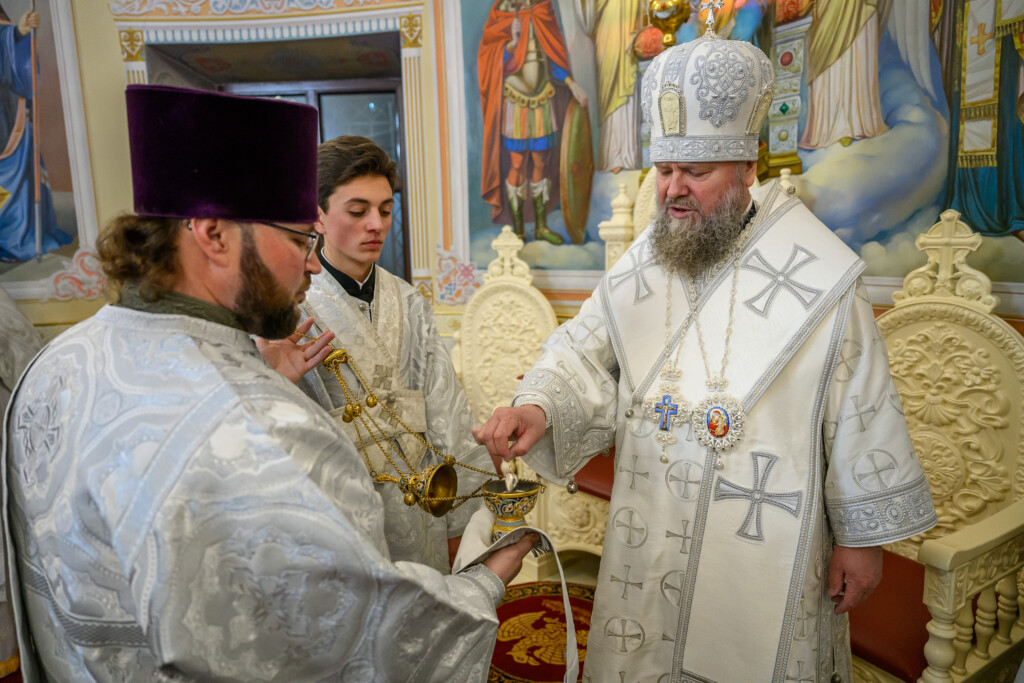 La vohodul mic, Ierarhul a transmis distincții mitropolitane clericilor mănăstirii pe care Înaltpreasfințitul Mitropolit Vladimir le-a conferit pentru munca pe care o depun pentru binele credincioșilor și a Sfintei Mănăstiri.