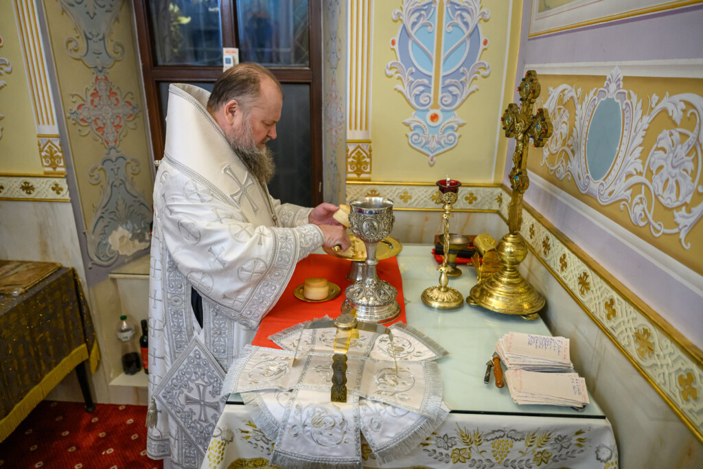 În încheierea Sfintei Liturghii, Preasfinția Sa împreună cu clericii au sfințit prinoasele aduse de către credincioși.