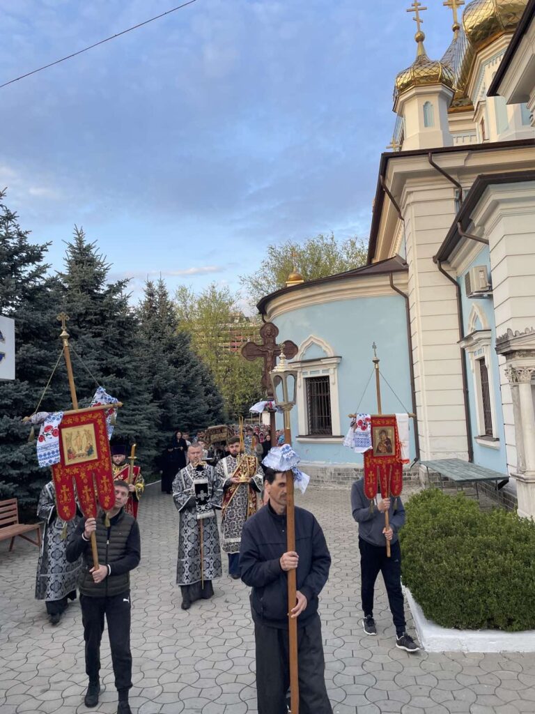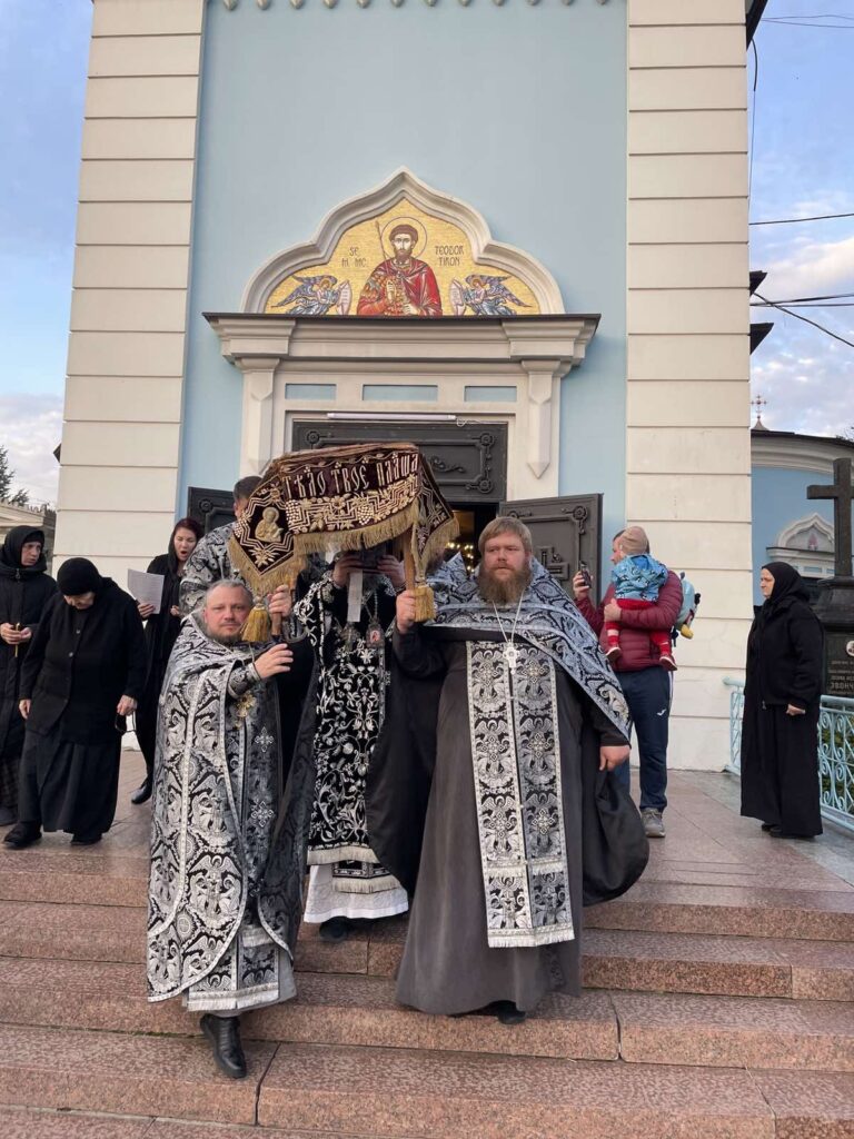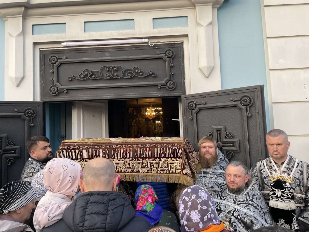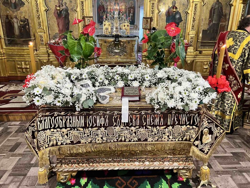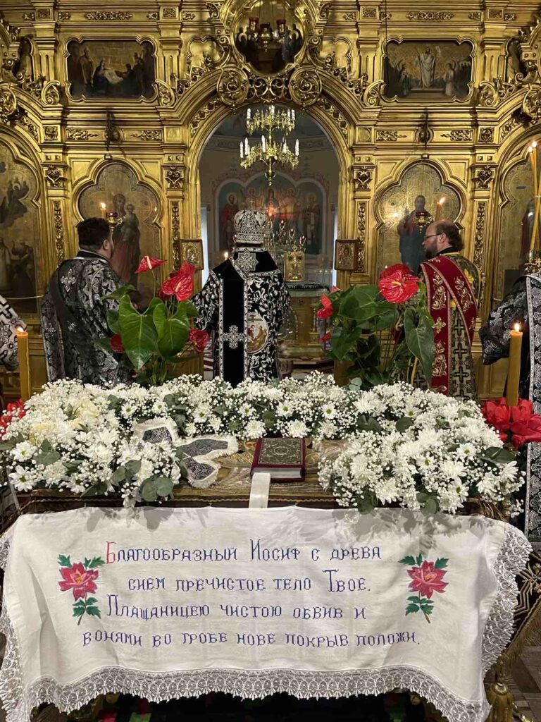 La sfârșitul Doxologiei Mari a avut loc tradiționala procesiune în jurul Catedralei mănăstirești care simbolizează ducerea către mormânt a Mântuitorului. Au fost patru opriri și la fiecare oprire a fost rostită o ectenie. După procesiune, toți credincioșii prezenți au trecut pe sub Sfântul Epitaf la intrarea în lăcașul de cult. Apoi, Sfântul Epitaf a fost așezat pe Sfânta Masă cântându-se troparul „Iosif cel cu bun chip”.