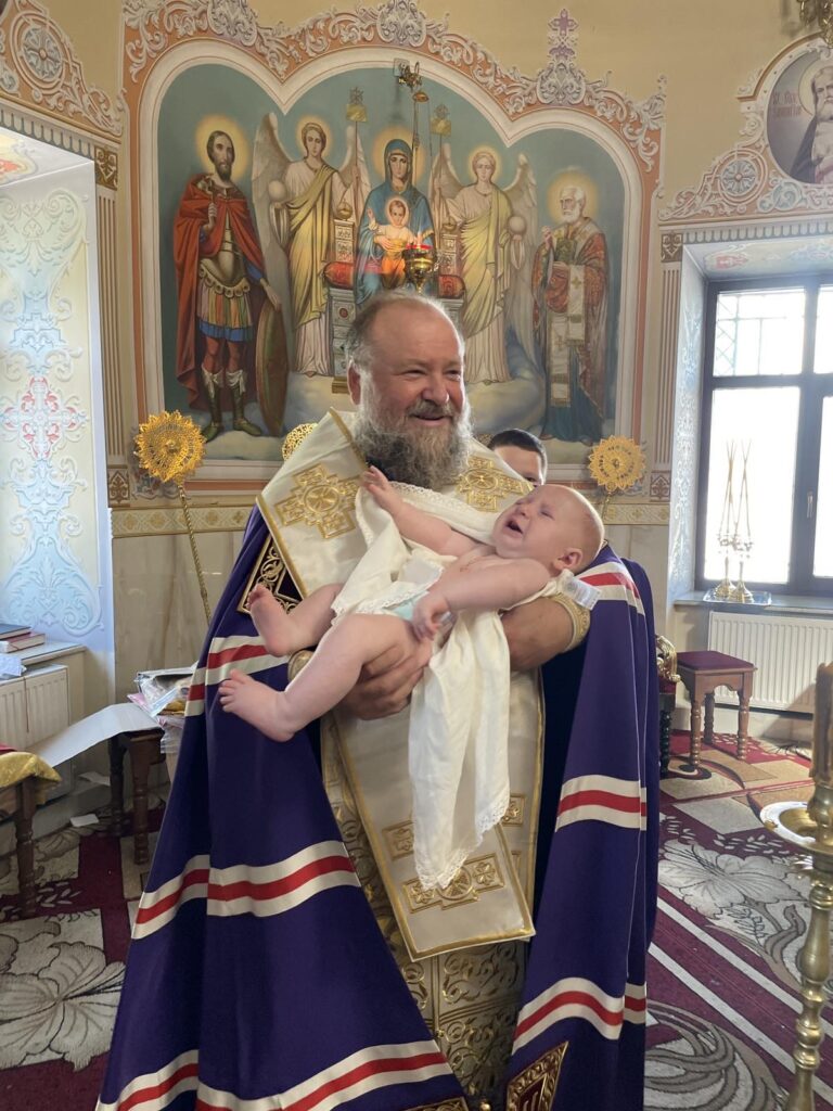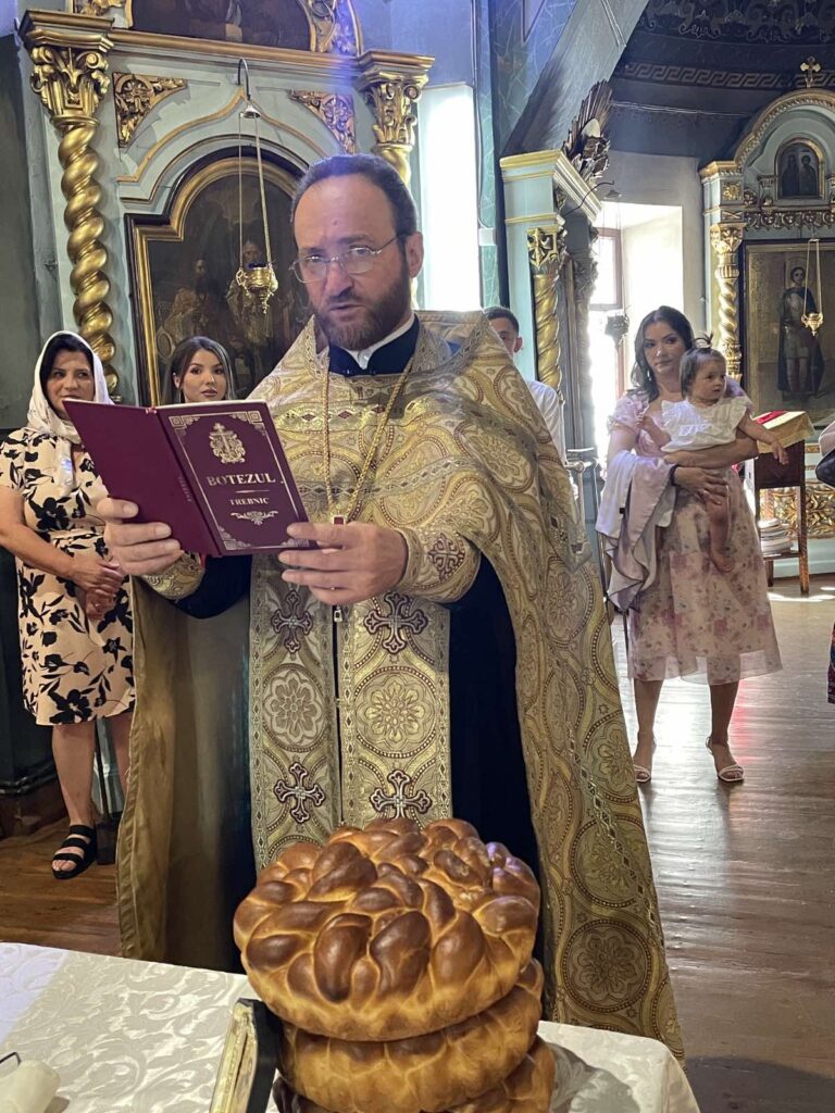 Slujba a fost oficiată cu rugăciuni de binecuvântare, chemând harul Duhului Sfânt asupra noului creștin.