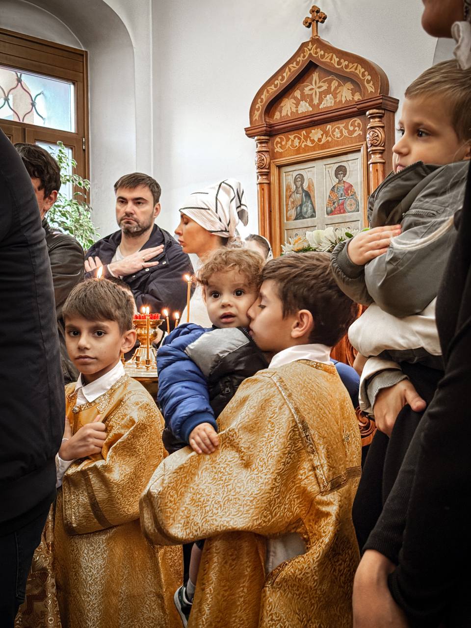 La slujbă au participat enoriașii, binefăcătorii și ctitorii bisericii Sfintei Treimi din Konkovo.
