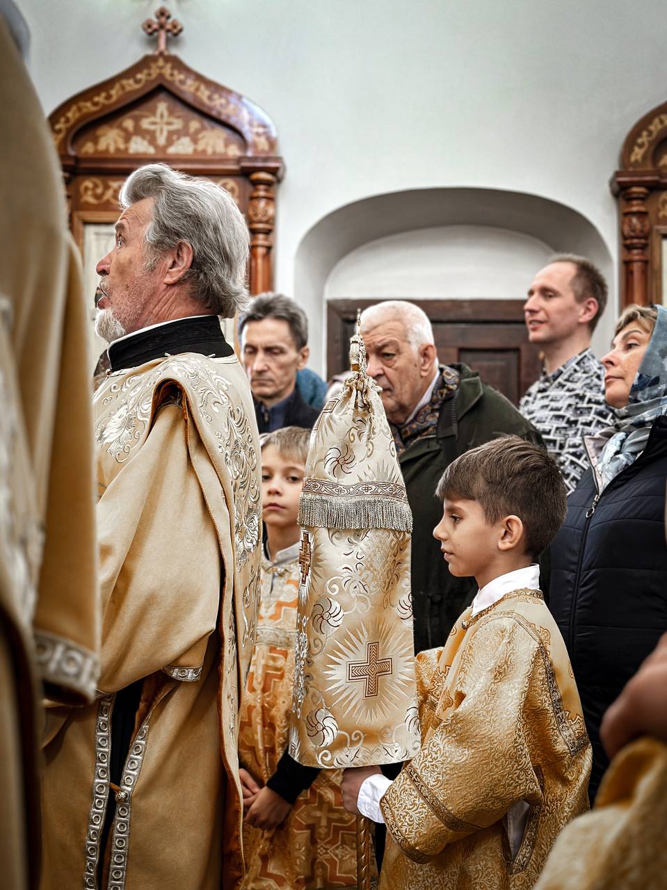 Răspunsurile liturgice au fost oferite în limba slavonă și română de corul parohiei, condus de doamna reghent Larisa Artiușenko.