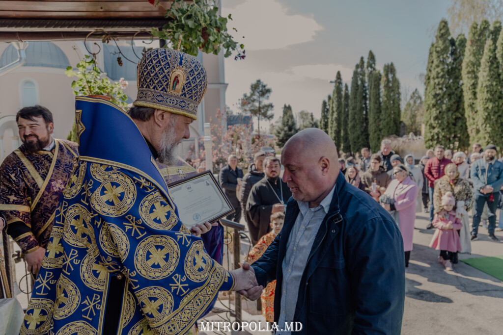 Pentru munca deosebită depusă în cadrul Mănăstirii, la vohodul mic, Întâistătătorul a oferit prot. mitr. Nicolae Tudoreanu, chelarul și administratorul Mănăstirii – distincția Eparhiei de Tiraspol și Dubărasi ”Sf. Arh. Mihail” de gr. II.
