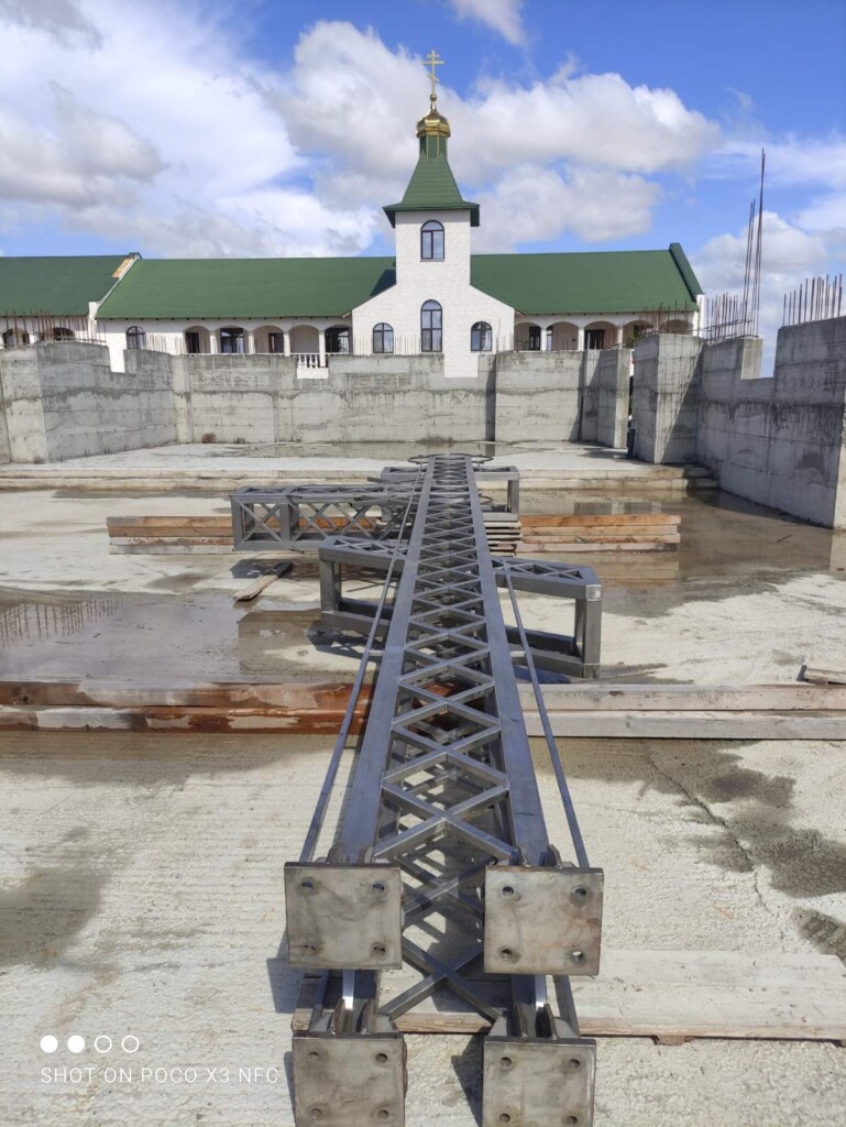 Tot astăzi a fost adusă crucea deja realizată și pregătită pentru a fi montată.